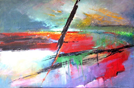 No deshacemos maletas; mis pinturas se han hecho viajeras, globalización a tope...MANCHESTER fue primero; en Italia, muestra en la Feria de PIACENZA; vuelta a España, (León), concretamente en la Galería CINABRIO; regreso a Italia en esta ocasión participando en ARTE GéNOVA, en Diciembre... Y ya oliendo a primavera -será en Abril- tenemos en puertas el encuentro de Arte en LYON. Viajes, emociones, impresiones imborrables... vividas siempre con la grata compañía y buen hacer de Galería de Arte LE PETIT ATELIER, de Lérida. Seguiré informando y.... ¡PINTANDO!, por supuesto. Os acompaño la obra DIVERTIMENTO, jugando con la abstracción. ¿Qué os parece?